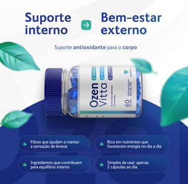 Ozenvitta é um suplemento natural em cápsulas criado para apoiar o processo de emagrecimento de forma gradual. Ele não é remédio, não age de forma agressiva e não promete resultado rápido. A proposta é ajudar o corpo a controlar melhor o apetite, lidar com o inchaço e funcionar com mais equilíbrio ao longo do dia, especialmente quando a rotina não está perfeita.